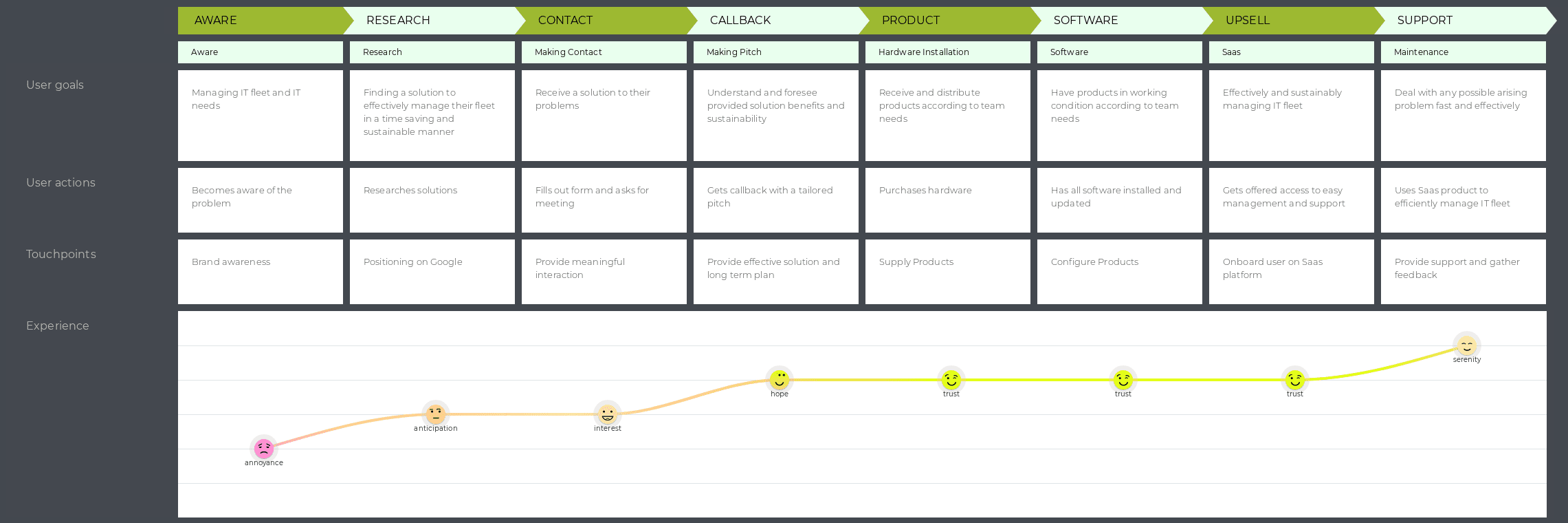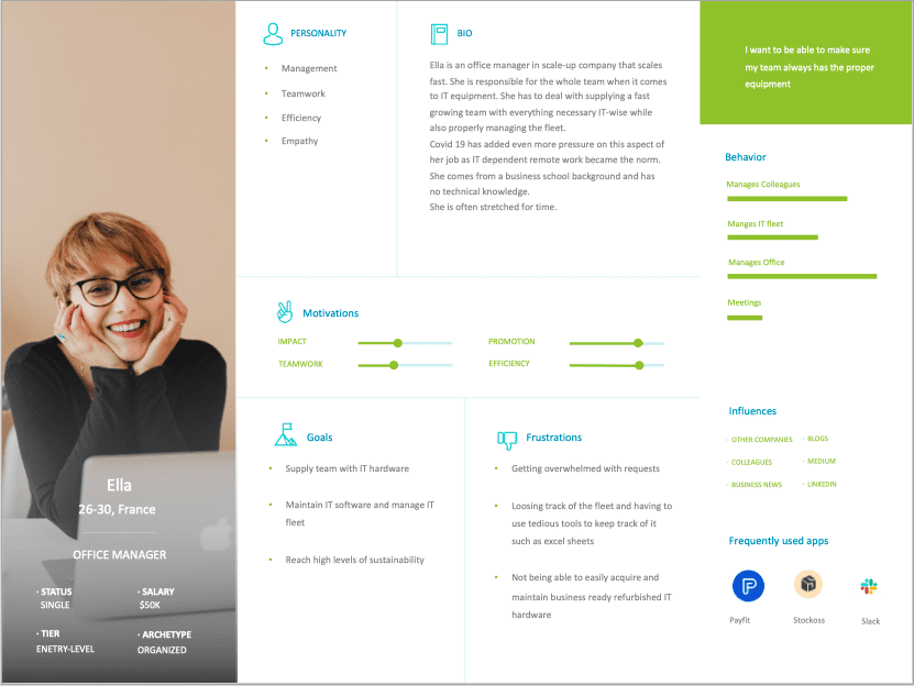 The product is a SaaS solution that helps businesses manage their IT fleet in an efficient manner. It allows managers to keep track of their hardware and software fleets, repairs and life cycles and facilitates access to government sponsored ecological refurbishing programs.