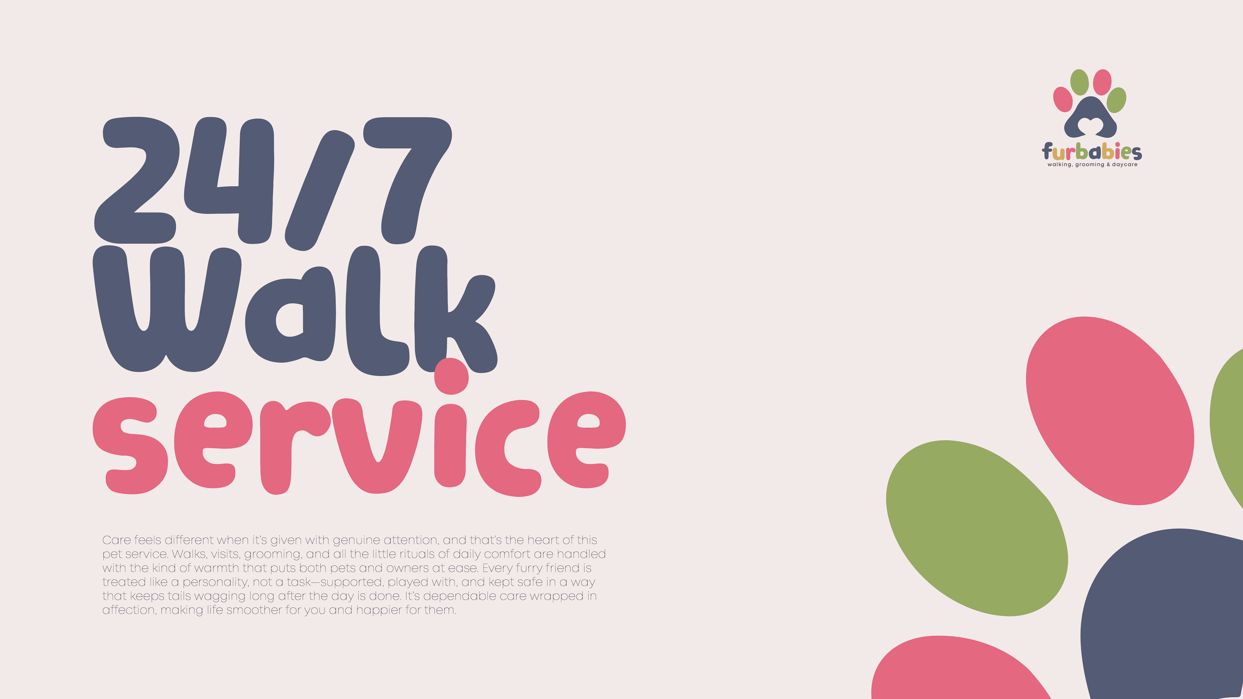We were asked to develop a brand identity for a company offering walking, sitting, and grooming services for pets. The aim was to create a presence that feels friendly, reliable, and warm, reflecting the trust and care at the heart of their work. We crafted cohesive brand visuals that emphasize approachability, comfort, and gentle professionalism. The resulting identity aims to position the company as a dependable, welcoming choice for everyday pet care.